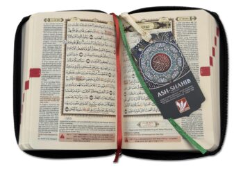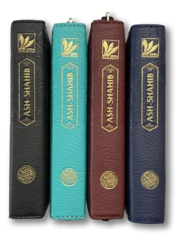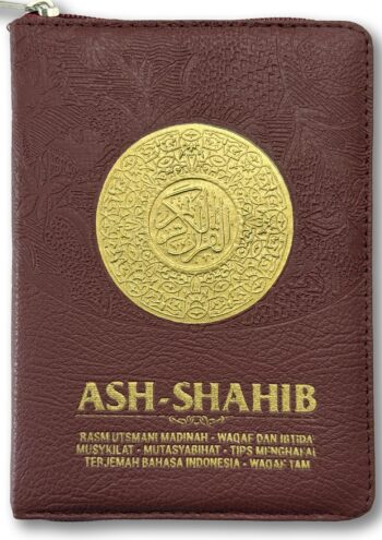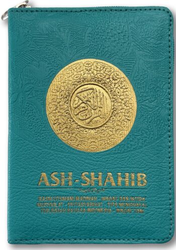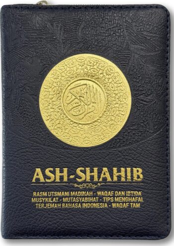 Mushaf Ash-Shahib Ukuran A6 Dompet (11x14cm). Dengan fitur ekslusif: Mutasyabihat, Musykilat, Wakaf Ibtida’ (tempat berhenti dan memulai pada ayat-ayat panjang), Terjemahan Bahasa Indonesia, Potongan ayat halaman selanjutnya, Tips mudah mengingat ayat-ayat yang mirip bagi penghafal.